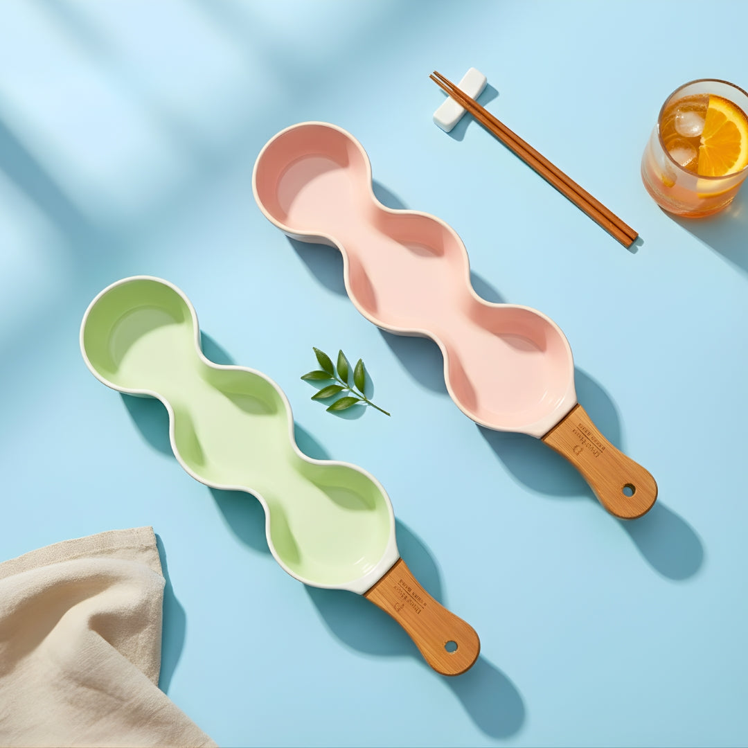 Single Handle Ceramic Chip Dip Platter (Set Of 2) Swasha