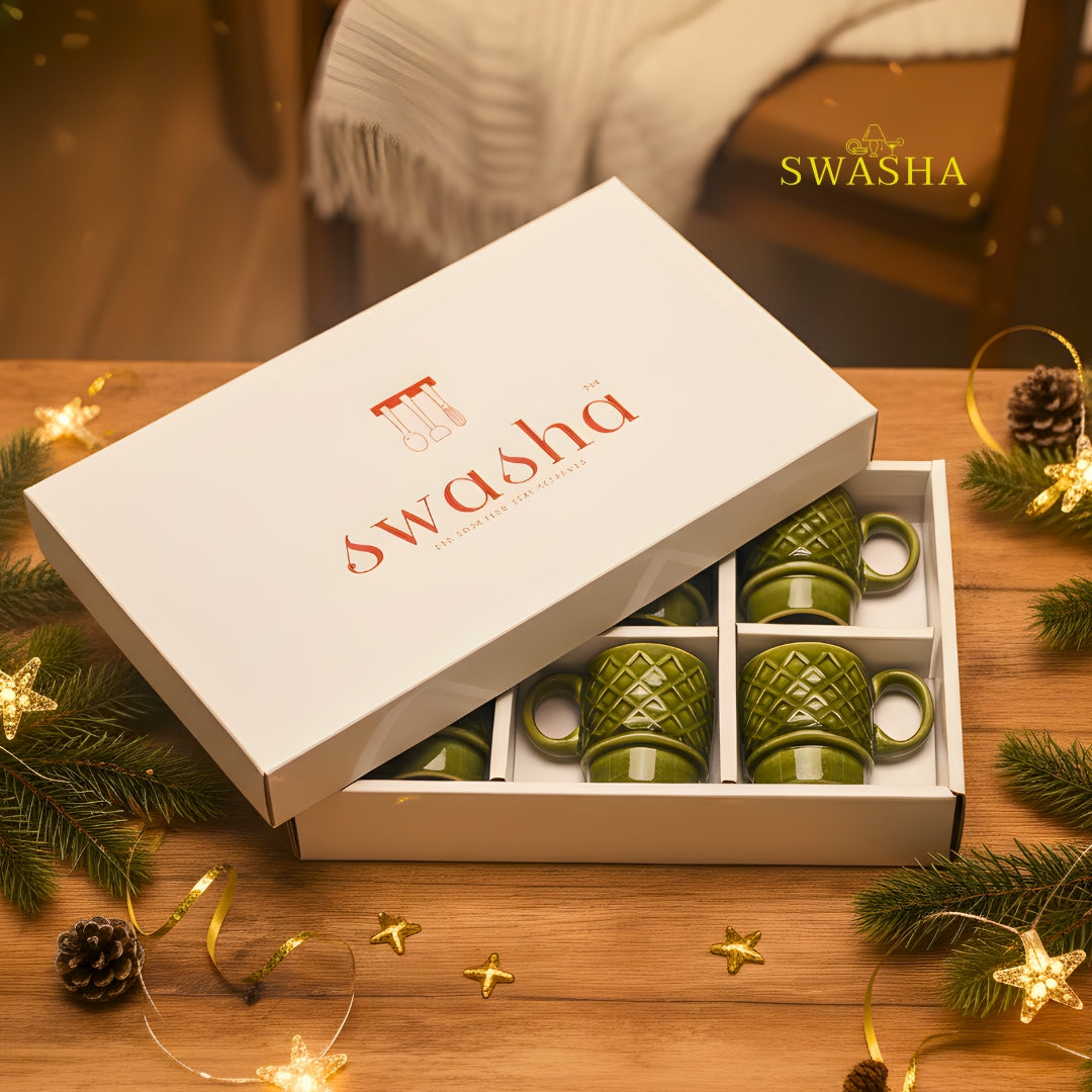 Upgrade your coffee and tea moments with Swasha’s Premium Stoneware Stackable Cup Set. This set of 6 cups (270ml & 150ml) is crafted from durable stoneware ceramic with a smooth matte glaze. Space-saving, elegant, and perfect for home, office, or gifting. Microwave & dishwasher safe, ideal for everyday luxury use.