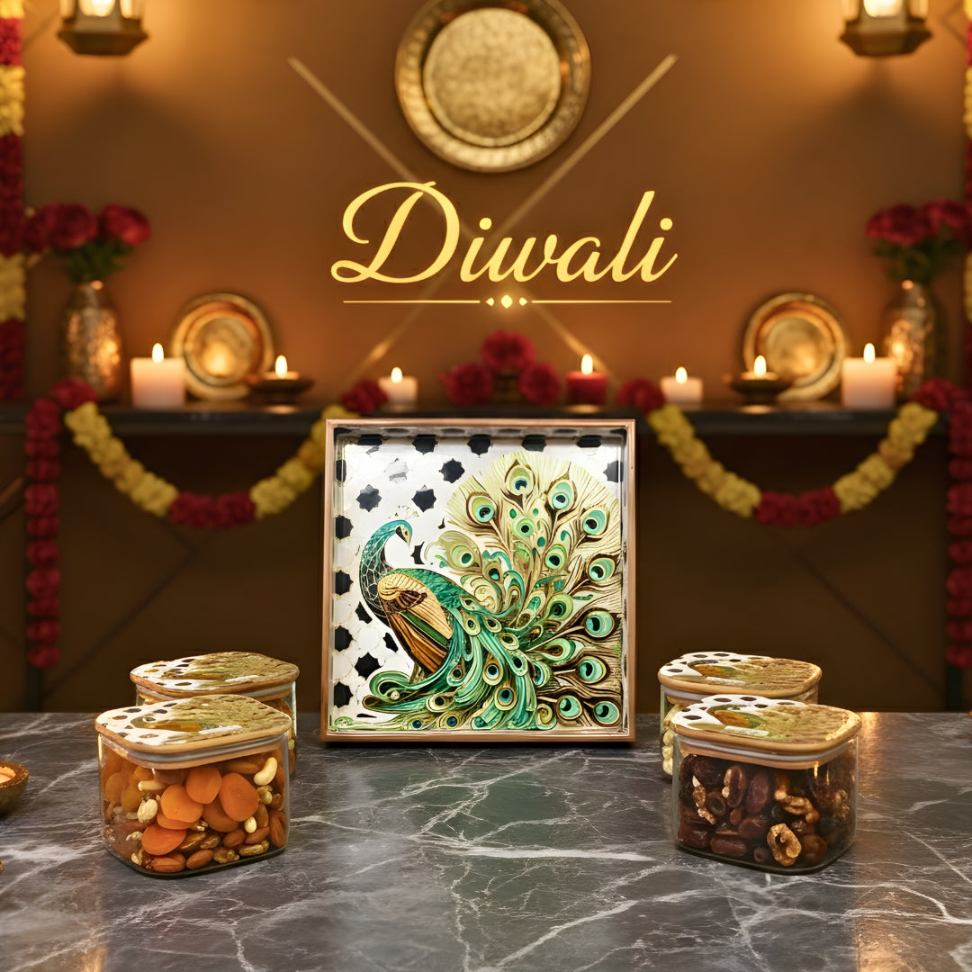 Swasha Decorative Storage Jars with Lids & MDF Tray – Set of 4