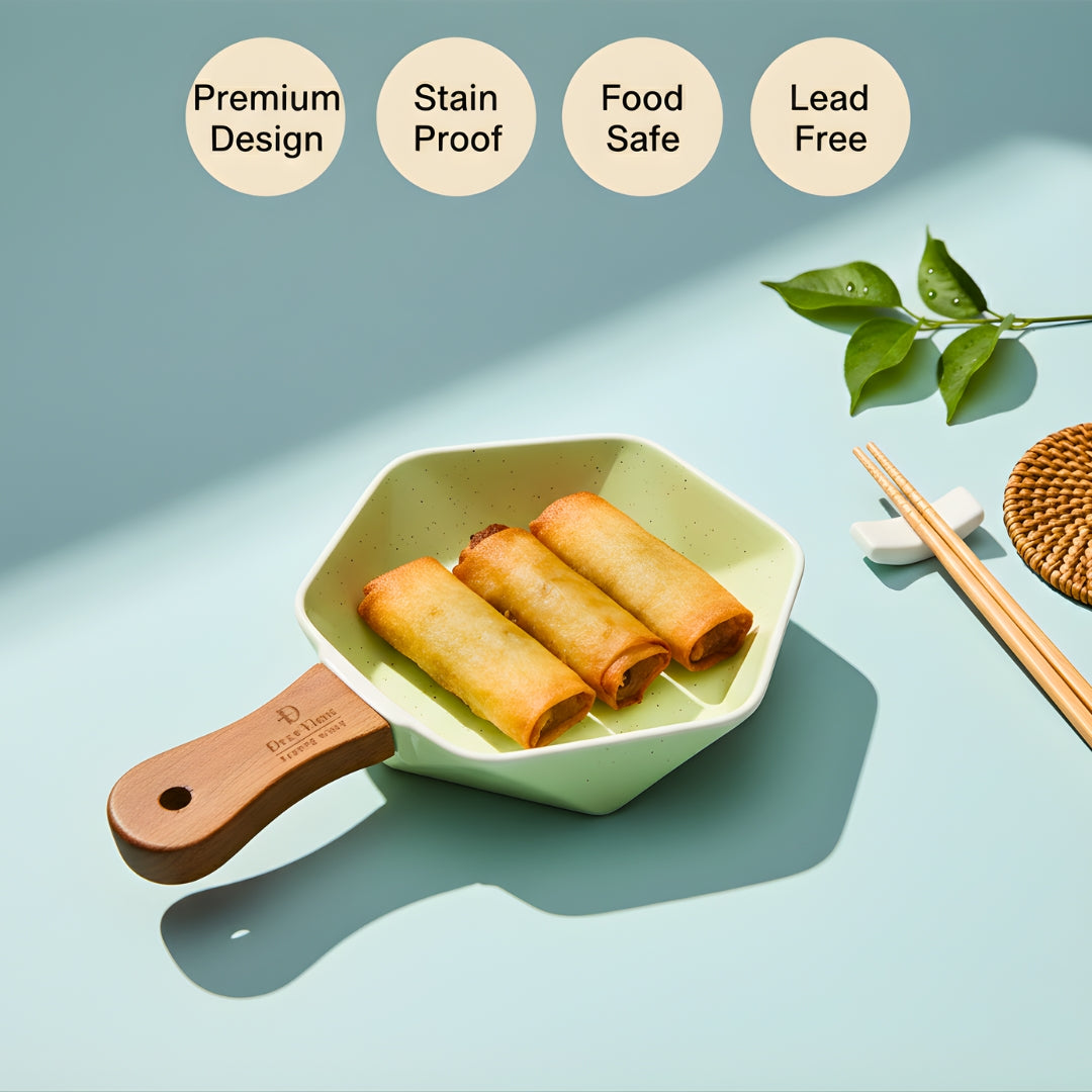 Serve in style with the Swasha Multicolor Single Handle Chip Dip Platter, crafted from premium quality ceramic. Designed with a sleek handle for easy grip, this platter is perfect for serving chips, nachos, snacks, and dips in a modern and elegant way.