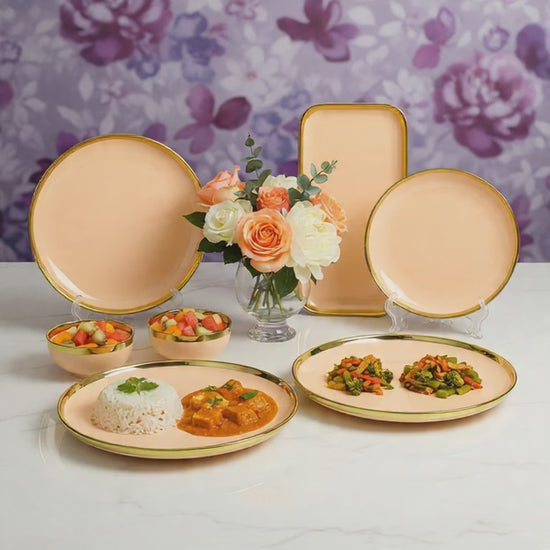 SWASHA Porcelain Dinner Set of 28 Pieces (Glossy Peach Golden)