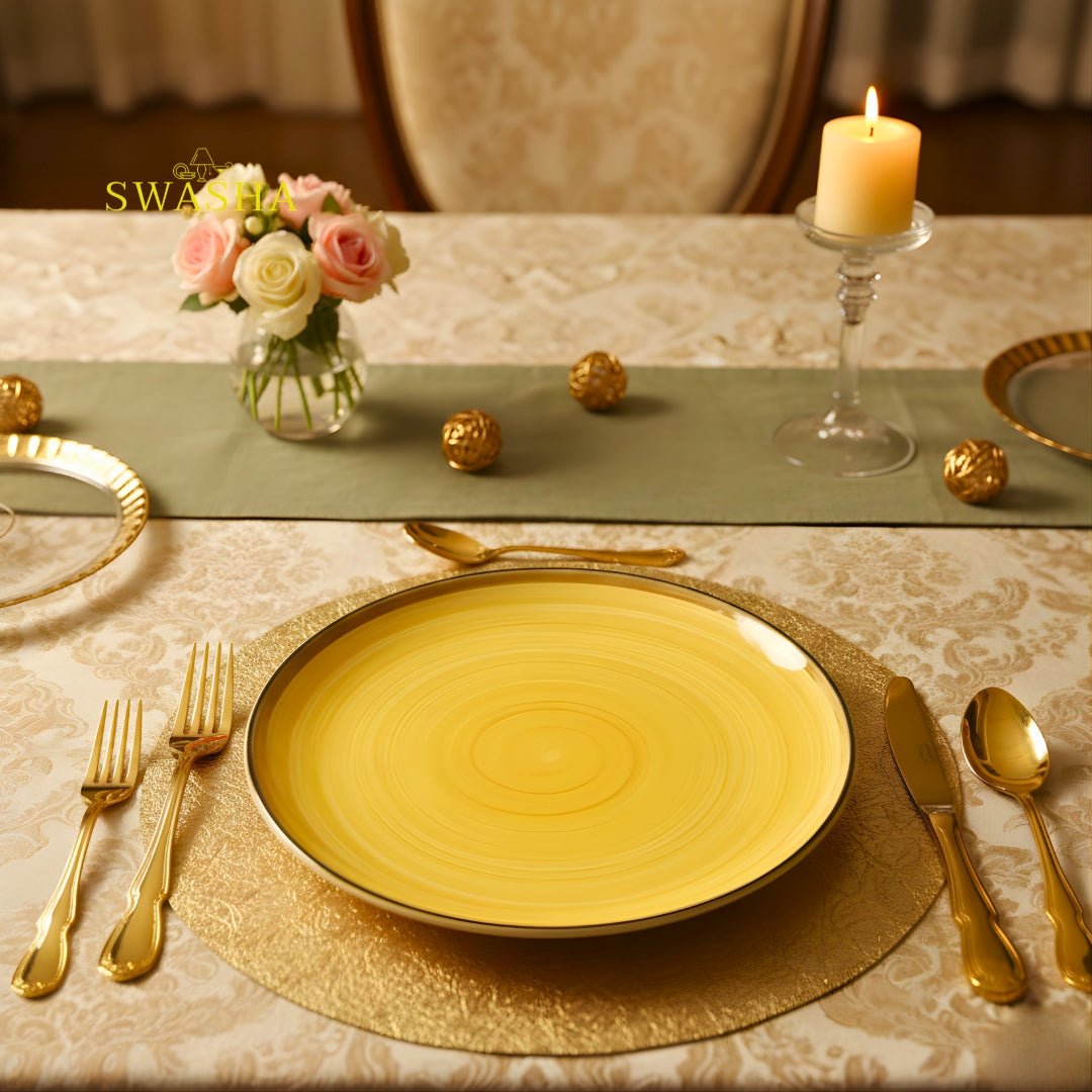 SWASHA Porcelain Dinner Set of 28 Pieces | Tableware | Dinnerware (Glossy Yellow)