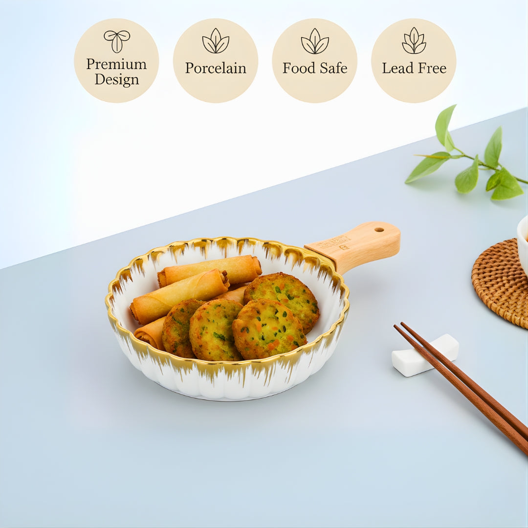 Upgrade your dining and serving style with the Swasha Single Handle Round Serving Platter – Set of 2. Made from premium porcelain, these elegant round platters are designed with a sturdy single handle for effortless serving. Perfect for presenting snacks, appetizers, desserts, or even main course dishes, this set combines durability with timeless elegance.