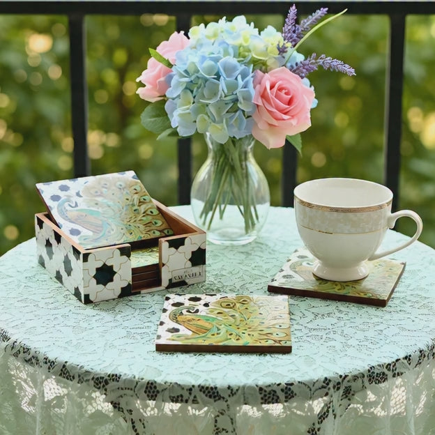 Swasha Wooden MDF Coaster Set of 6 – Glossy Resin Finish